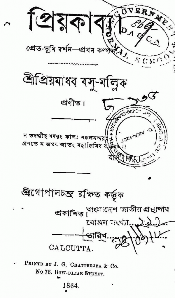 প্রিয়কাব্য / শ্রীপ্রিয়মাধব বসু-মল্লিক।