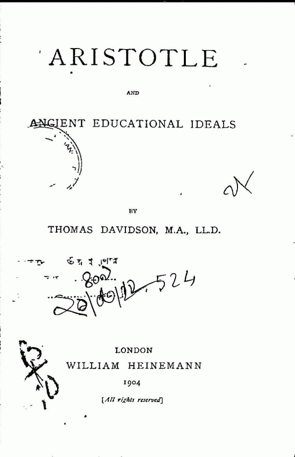Aristotle and ancient educational ideals /