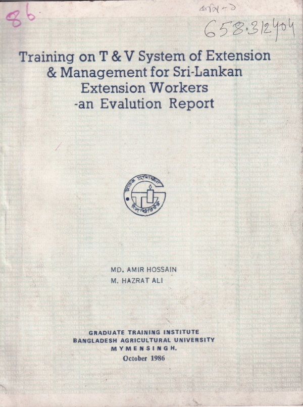 Training of T & V Sustem of Extension & Management for Sri-LANKAN Estension Workers : an evalution report /