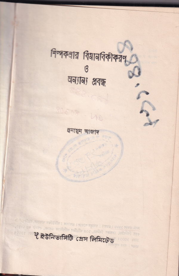 শিল্পকলার বিমানবিকীকরণ ও অন্যান্য প্রবন্ধ /