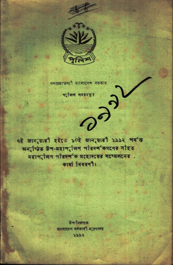 ৭ই জানুয়ারী হইতে ১০ই জানুয়ারী ১৯৯২ পর্যন্ত অনুষ্ঠিত উপ-মহাপুলিশ পরিদর্শকগণের সহিত মহাপুলিশ পরিদর্শক মহোদয়ের সম্মেলনের কার্য্যবিবরণী /