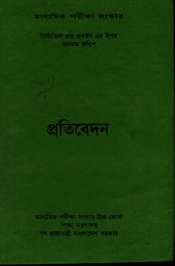 মাধ্যমিক পরীক্ষা সংস্কারঃ নৈর্ব্যক্তিক প্রশ্ন প্রবর্তন এর উপর জনমত জরিপ প্রতিবেদন /