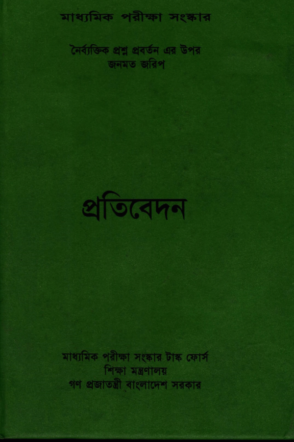 মাধ্যমিক পরীক্ষা সংস্কার : নৈর্ব্যক্তিক প্রশ্ন প্রবর্তন এর উপর জনমত জরিপ (প্রতিবেদন) / মাধ্যমিক পরীক্ষা সংস্কার টাস্ক ফোর্স।