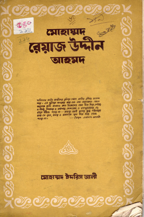 মোহাম্মদ রেয়াজ উদ্দীন আহমদ : (১২৬৯-১৩৪০) /