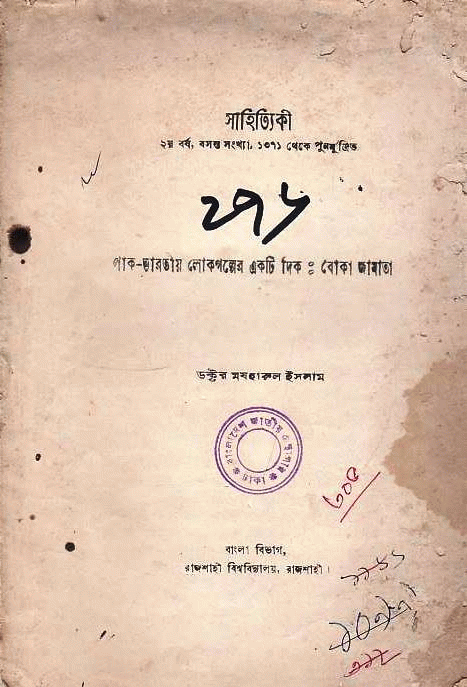 সাহিত্যিকী: পাক-ভারতীয় লোকগল্পের একটি দিক-বোকা জামাতা/ ডক্টর মযহারুল ইসলাম।