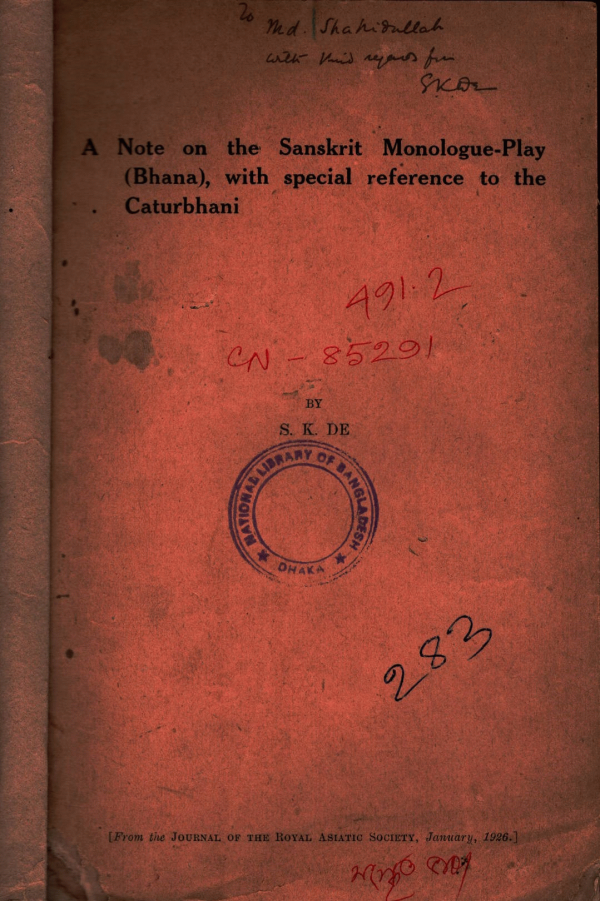 A Note on the Sanskit Monologue-play(Bhana), with special reference to the Caturbhani / S. K . DE.