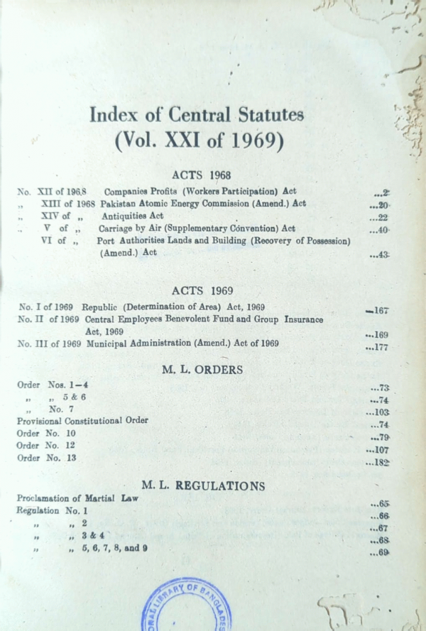 THE DACCA LAW REPORTS : Index of Central Statutes /