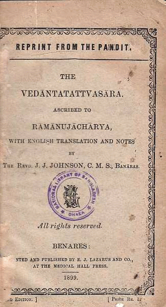 The Vedantattvasara,Ascribed To Ramanujacharya,With English Translation And Notes/