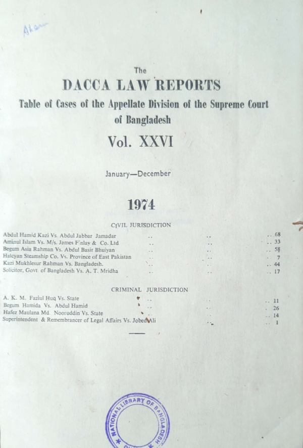 THE DACCA LAW REPORTS : Table of Cases of the Appellate division of supreme court of Bangladesh /