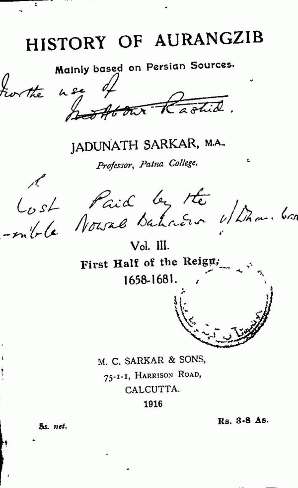 HISTORY OF AURANGAZIB / JADUNATH SARKER.