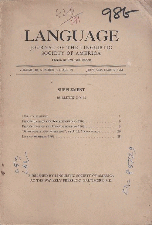 Language: Journal of the Linguistic Society of America/ Edited by Bernard Bloch.