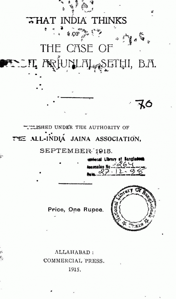 The Case of Pandit Arjunlal Sethi, B.A. /