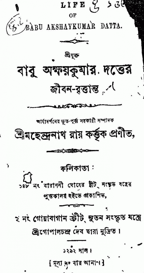 বাবু অক্ষয়কুমার দত্তের জীবন-বৃত্তান্ত /