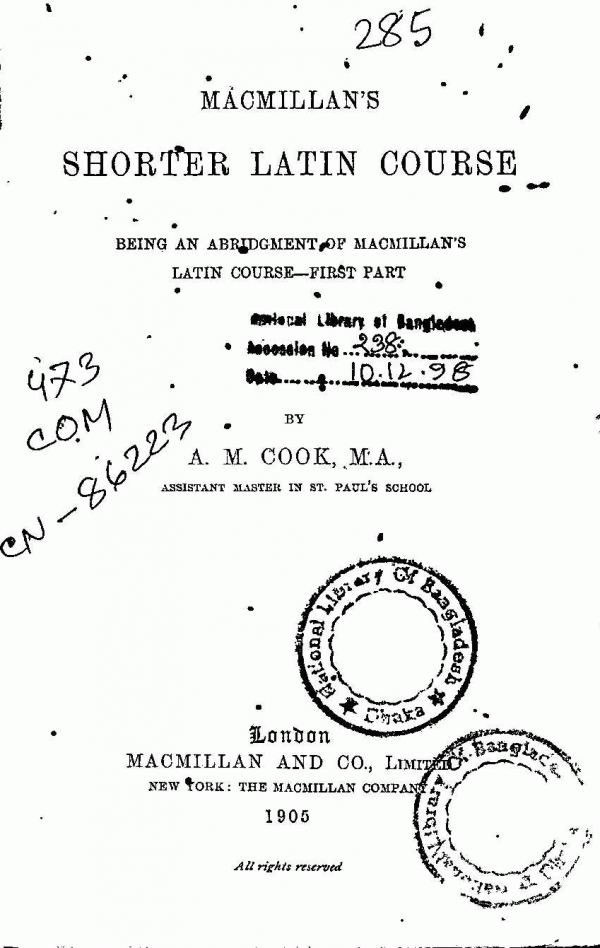 | 445 BES SECOND FRENCH COURSE / J. J. BEUZEMAKER. | 448 ERT Public School French Grammar / | 448.02 BEL Longmans modern French course / | 473 COM Macmillan's Shorter Latin Course / | 473.22 RIY The Young Scholar's English-Latin and Latin-English Dictionary / | 49 SBG. Germany/ | ৪৯১.২৪২ভটপ পালি প্রকাশ/ |