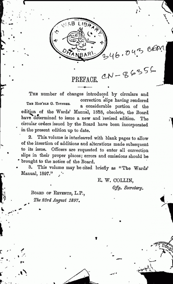 A manual for the guidance of officers in the adminstration of wards, attached and encumbered estates /