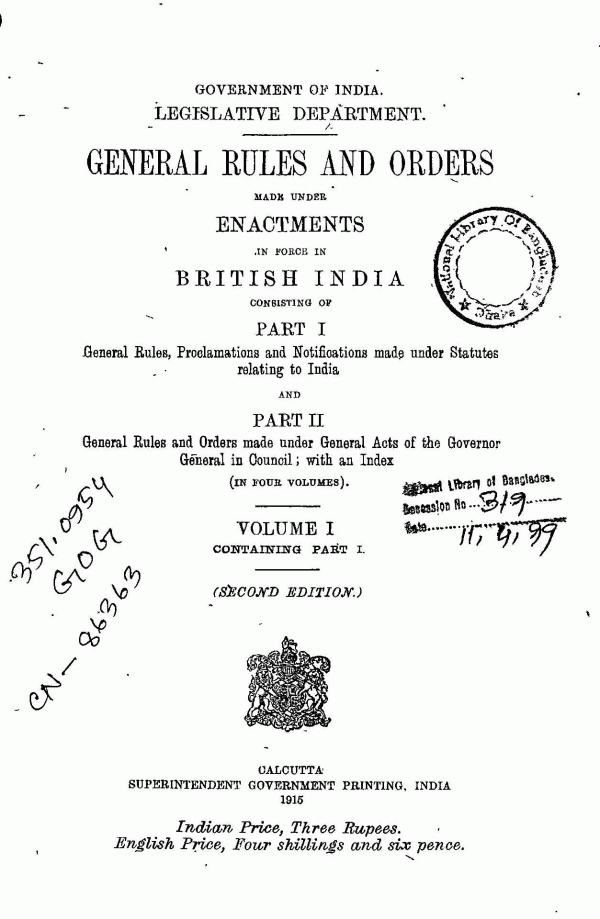 | 351.12CIV The Civil Service Regulations: Relating to Salary, Leave, pension and Travelling Allowance/ | 351.0954 Bengal Legislative Council proceedings/ | 351.0954 GIL. the bengal legislative council proceedings/ | 351.0954 GOG General rules and orders / | 351.54 GOV. Proceedings of the municipal bill special sub-committees/ | 351.54 QUA. Quarterly Civil list for Bengal/ | 351.54 ROM Minutes of evidence relating to the Indian Civil Service / |