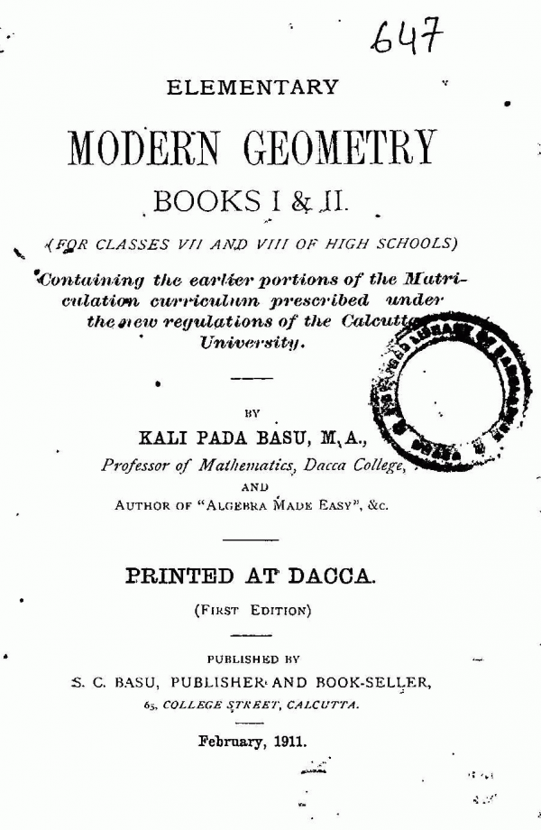 | ৫১৩ বনক্ষ ক্ষেত্রব্যবহার ও জরিপ সংবলিত পাটীগণিত / | ৫১৩ শমআ আধুনিক অঙ্ক প্রশিক্ষণ/ | ৫১৩.০৭ মজপ পাটীগণিত-শিক্ষাপ্রণালী / | 516 BAE Elementary Modern Geometry: Books I and II / | ৫১৬ কষএ ক্ষেত্রতত্ব / | ৫১৬ মলই ইউক্লিডের জ্যামিতি / | ৫১৬ শমপ পরিমিতি / |
