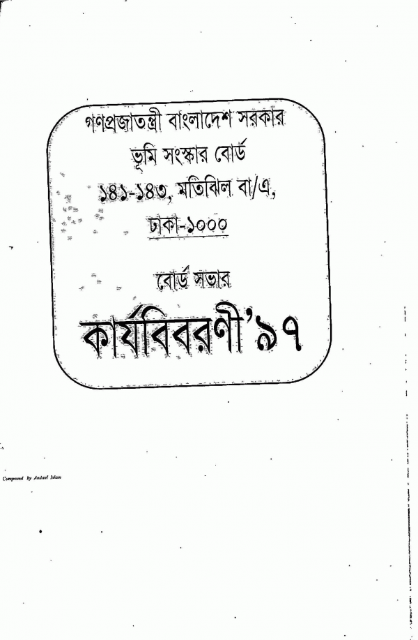 TextOriginal language: Bengali Publication details: ঢাকা: গণপ্রজাতন্ত্রী বাংলাদেশ সরকার, ভূমি সংস্কার বোর্ড, ১৯৯৭।Description: ১৫০ পৃ.; ২২ সেমি.।Subject(s): DDC classification: - ২৩ ৩৩৩.৩১
