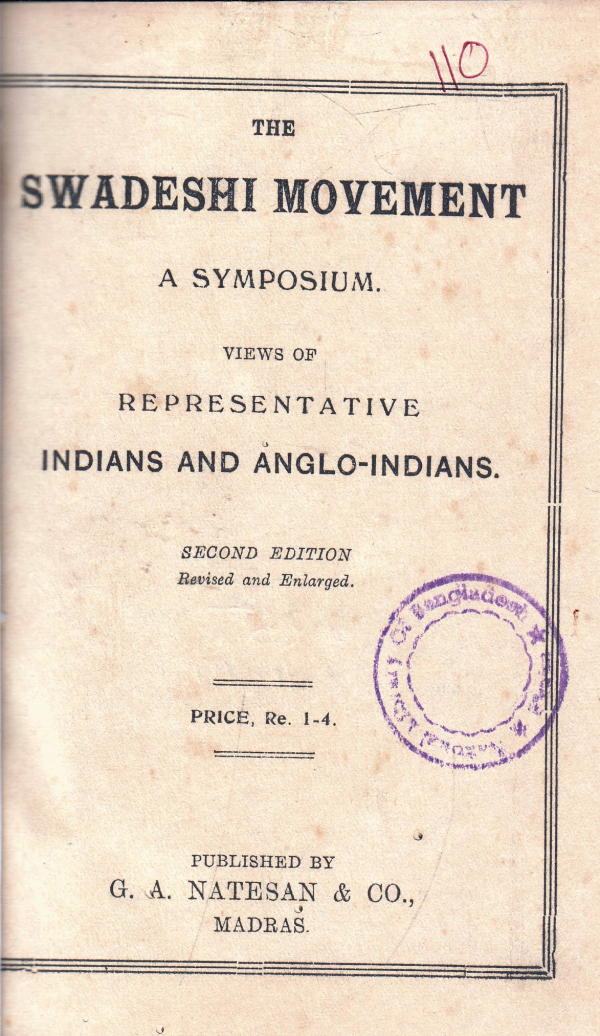 The swadeshi movement : A symposium views of representative Indians and Anglo-Indians /