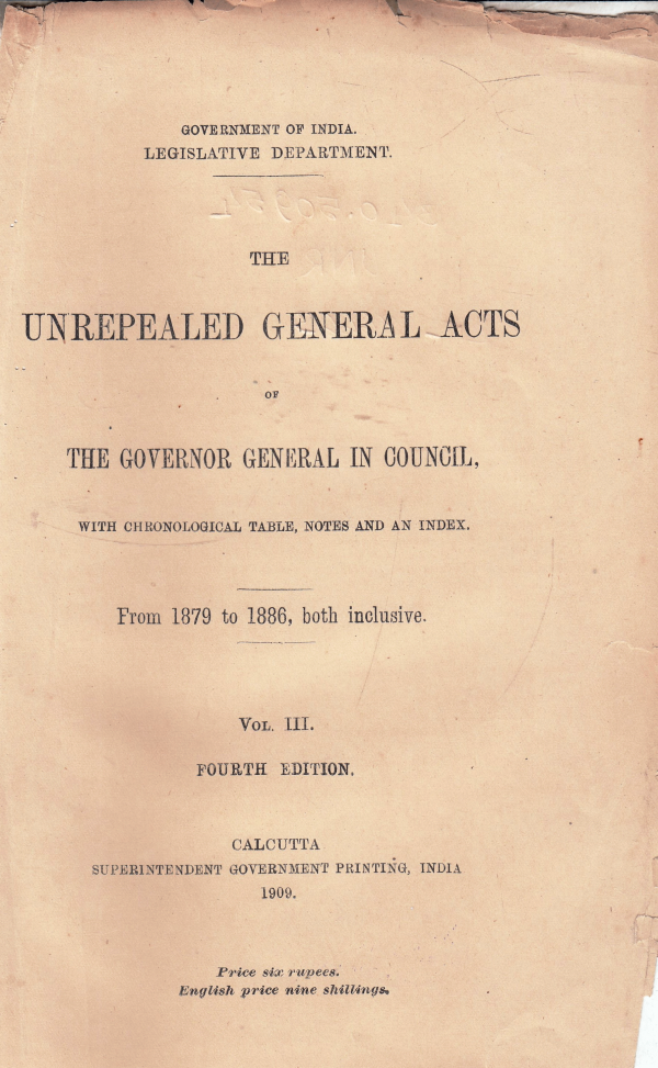 The Unrepealed General Acts Of The Governor General In Council : With Chronological Table Notes And Index From 1879 To 1886, Both Inclusive /