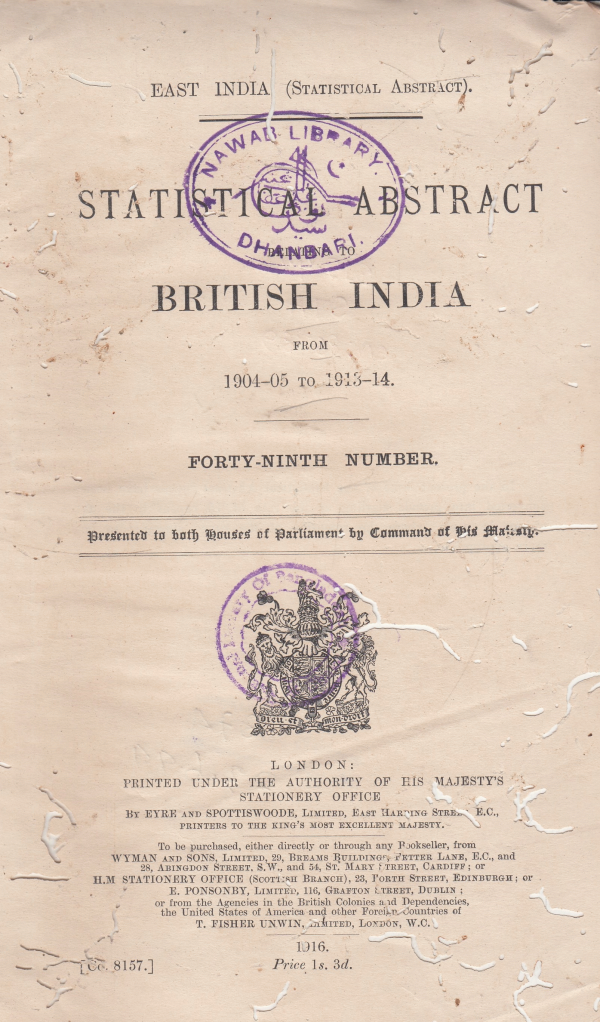 | 315.4 Statistical Abstract for British India/ | 315.4 CEN Census of India 1911: Part II-Tables/ | 315.4 OMB Bengal: Census of India, 1911 / | 315.42 STA. Statistical abstract of British India/ | 315.45 THC Census of India / | 315.54 CEN. Census of India/ | 320.947SOV Soviet Governments Statements and N.S. Khrushchov's Messages to Heads of Government on the Events in the Middle East/ |