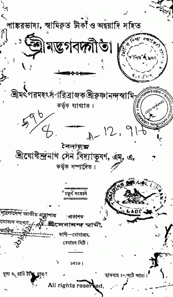 | 294.5 মখছ ছেলেদের চণ্ডী / | ২৯৪.৫ মজভ ভারত সমর বা গীতা পূর্ব্বাধ্যায় / | 294.5 রজগ রাজগুরু যোগিবংশ/ | ২৯৪.৫ শমদ শ্রীমদ্ভগবগীতা / | 294.50954 ROR Religion and Modern India / | ২৯৪.৫২১ যজব যজুর্ব্বেদ-সংহিতা / | ২৯৪.৫৩৬ ব্রতমালা-বিধান/ |