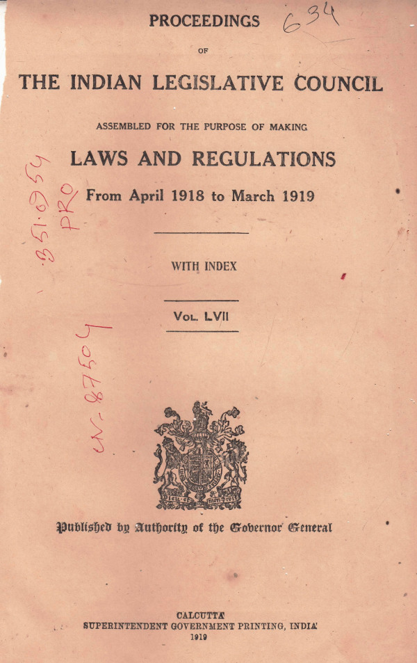 Proceedings of the Indian Legislative council: Laws and Regulations from April 1918 to March 1919/