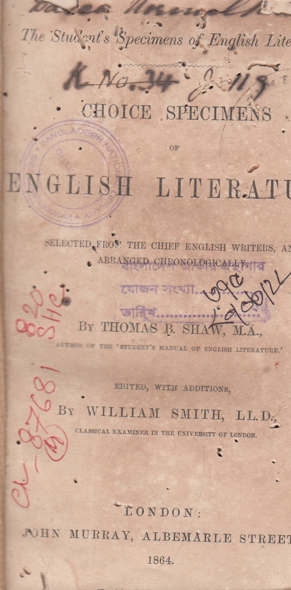 | 820 SCM. The Monastery/ | 820.9/008CHV The Victorian Age In Literature/ | 820.9 EVS A Short History of English Literature / | 820SHC Choice Specimens English Literature/ | 821.91KSM modern english drama. | 821 BAC Back To Life / | 821 FRT The teachinc of english poetry / |