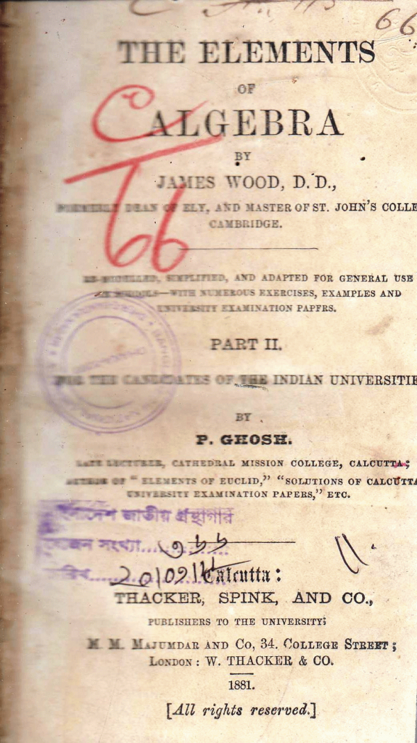 | 510ABT A Treatise Practical Mathematics/ | 512 HAE Elementary Algebra / | ৫১২ চধব। বীজগণিত/ | 512WOE The Elements of Algebra/ | 513 The Beginners Arithmetic/ | 513 ঘষপ পার্টীগণিত / | ৫১৩ পটগ পাটিগণিত প্রশ্নাবলী / |