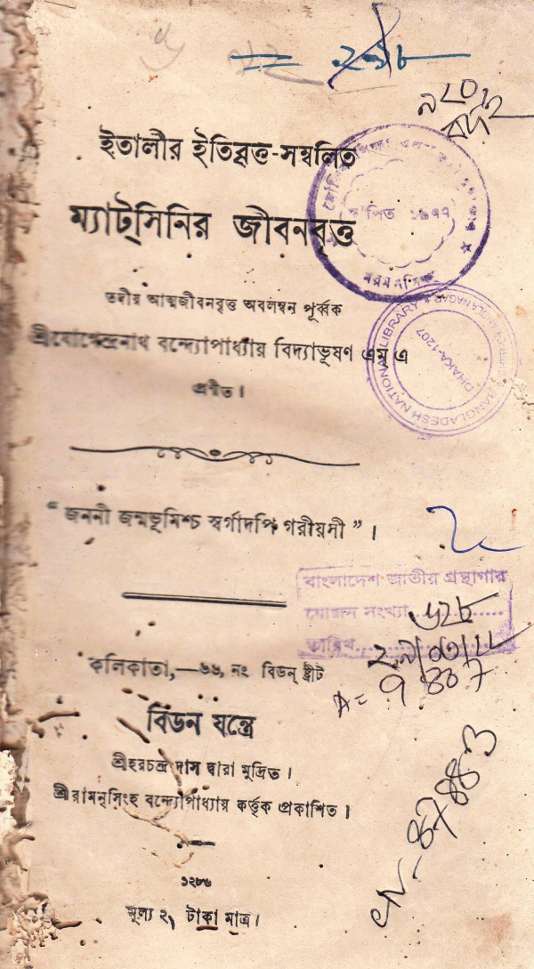ইতালীর ইতিবৃত্ত-সম্বলিত: ম্যাটসিনির জীবনবৃত্ত/