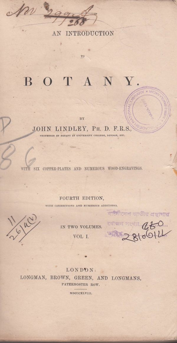 | 572.8BCM Microscope/ | 576.82 DAV. The Variation of animals and plants/ | 580 ESO. object lessons in botany/ | 580 LII An introduction to botany / | 580 STT A Text-book of Botany / | ৫৮০ মখউ উদ্ভিদ-বিচার / | ৫৯০ গপপ প্রাণি-বিদ্যা / |