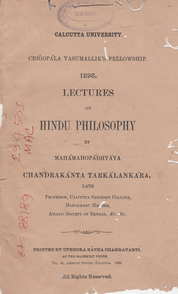 Crigopala Vasumallik's Fellowship 1898: Lectures on Hindu Philosophy/